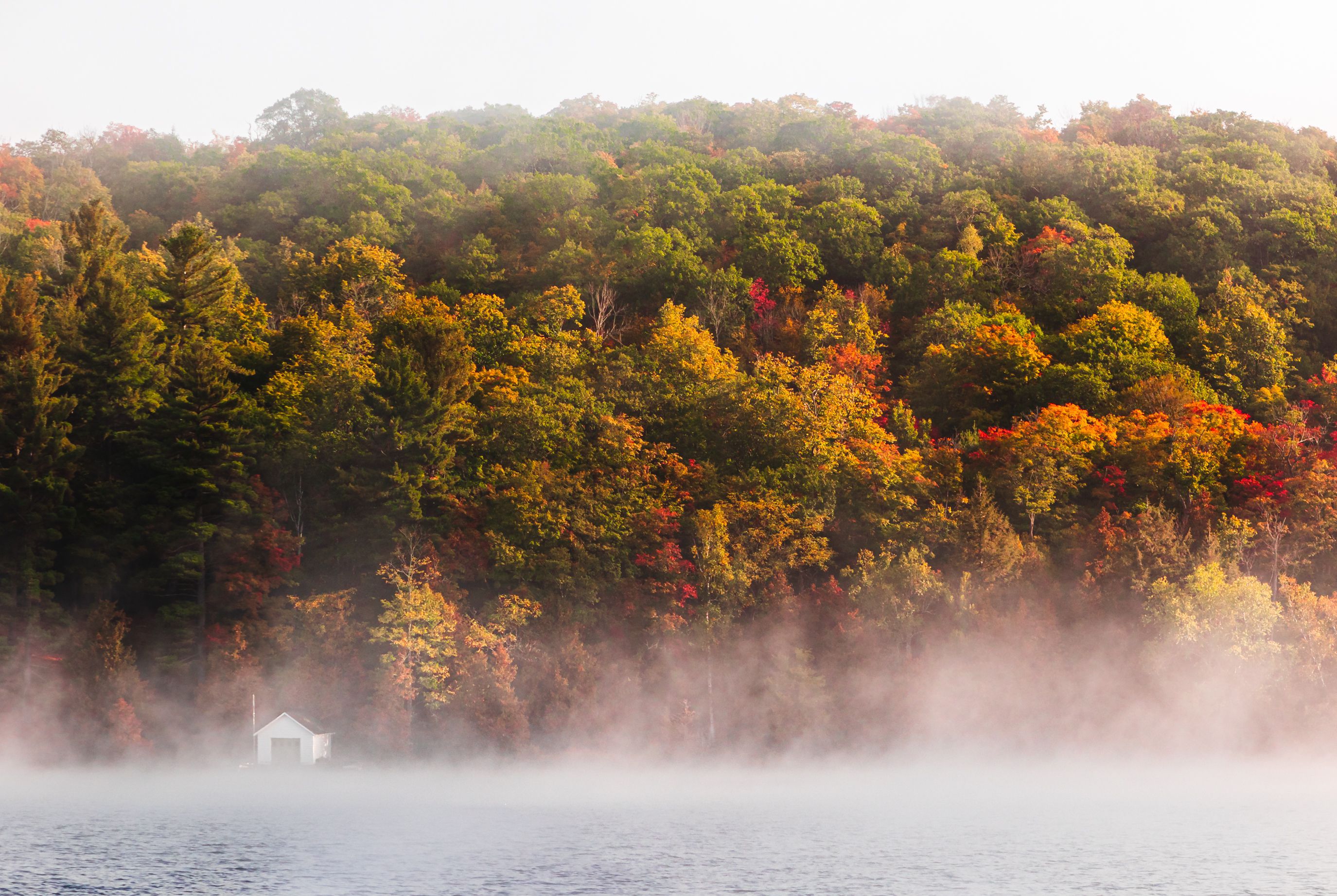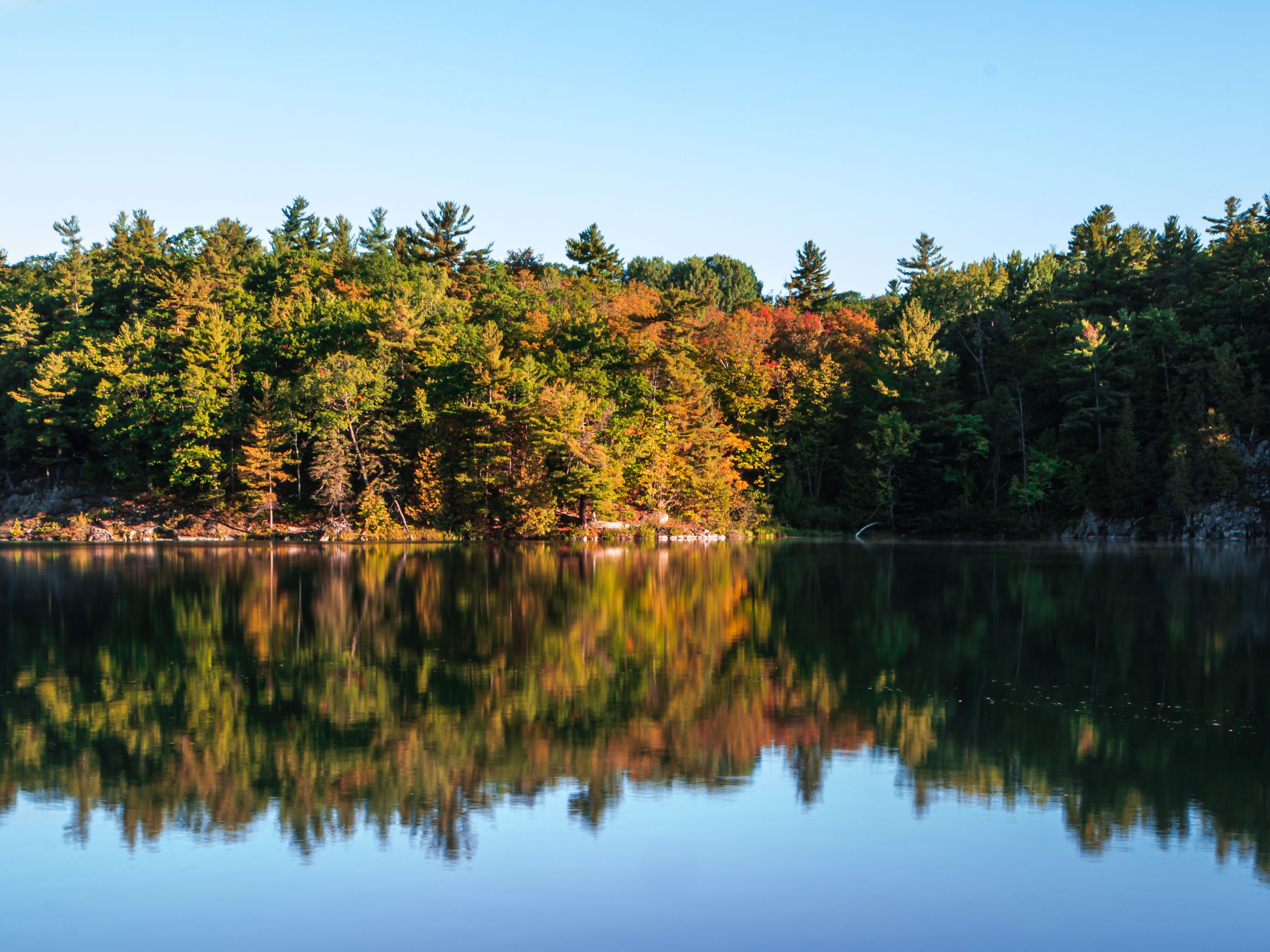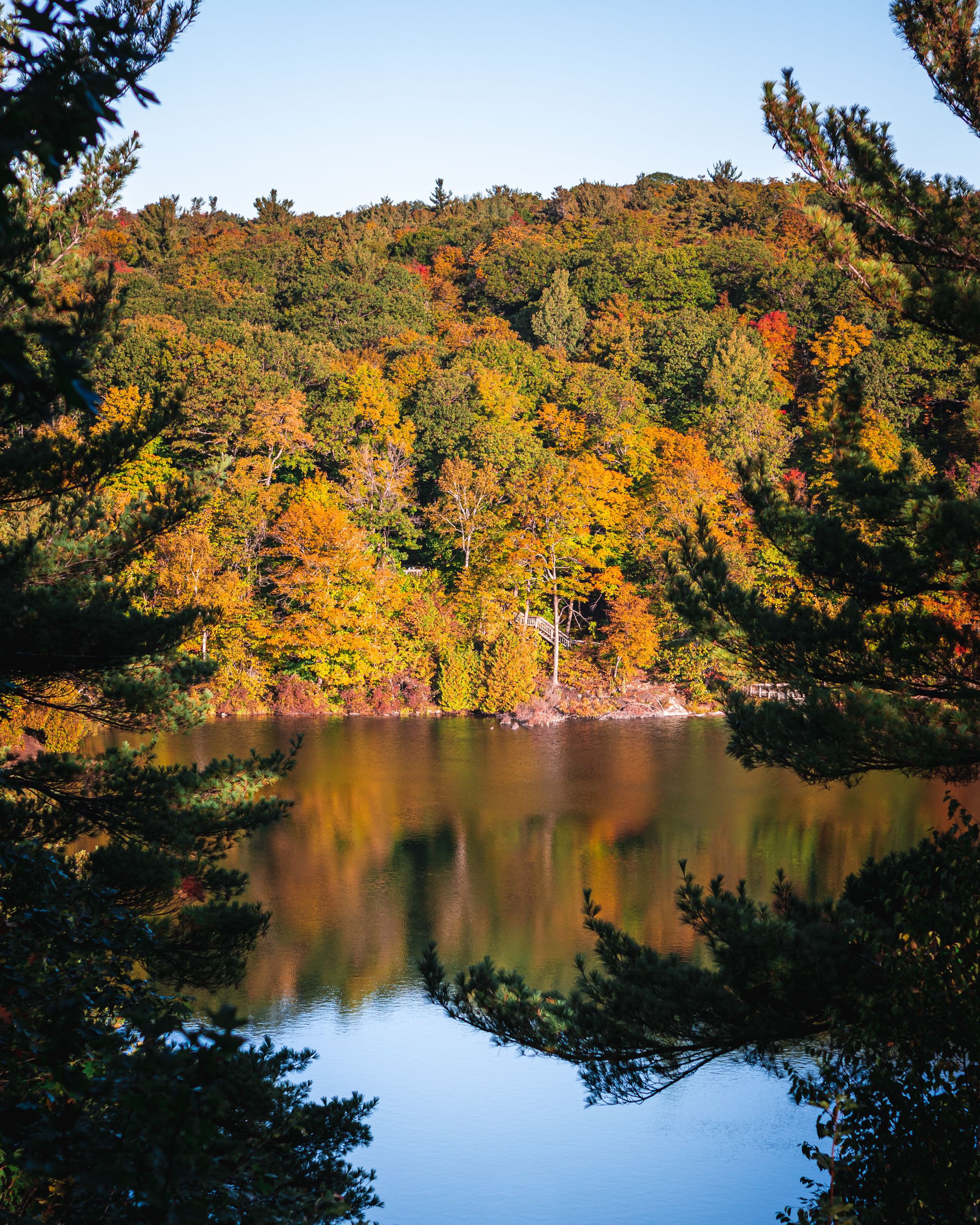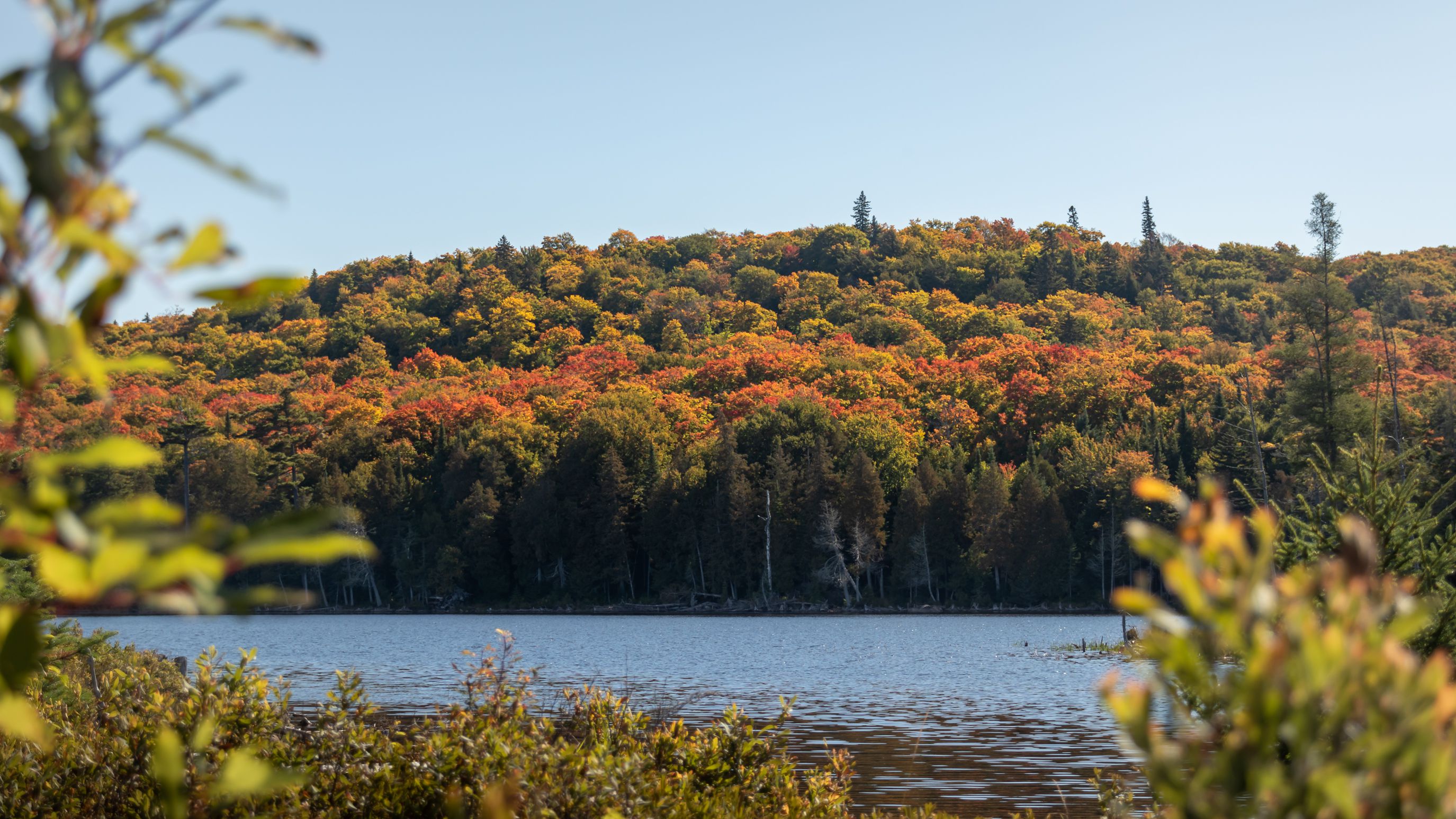J'avais enfin une vraie impression de dépaysement, d'inconnu ! Des arbres multicolore à perte de vue, de nombreux lacs ... (en plus tout cela au petit matin, c'est à dire quasiment pour moi tout seul !)
