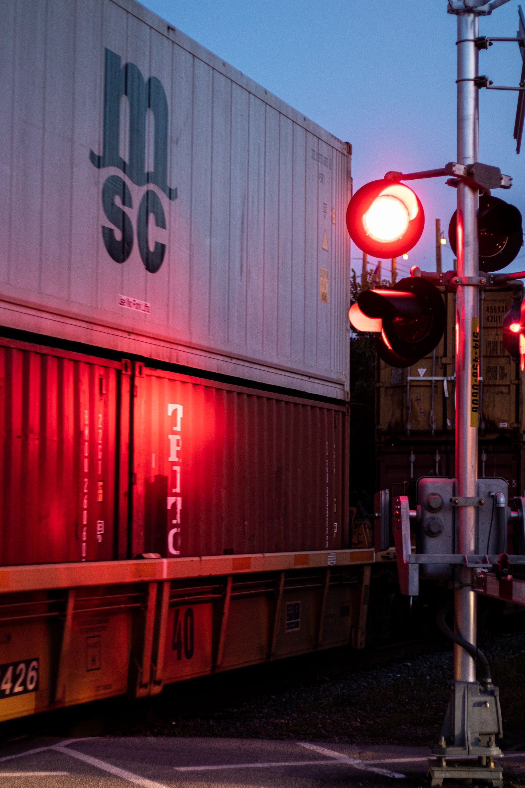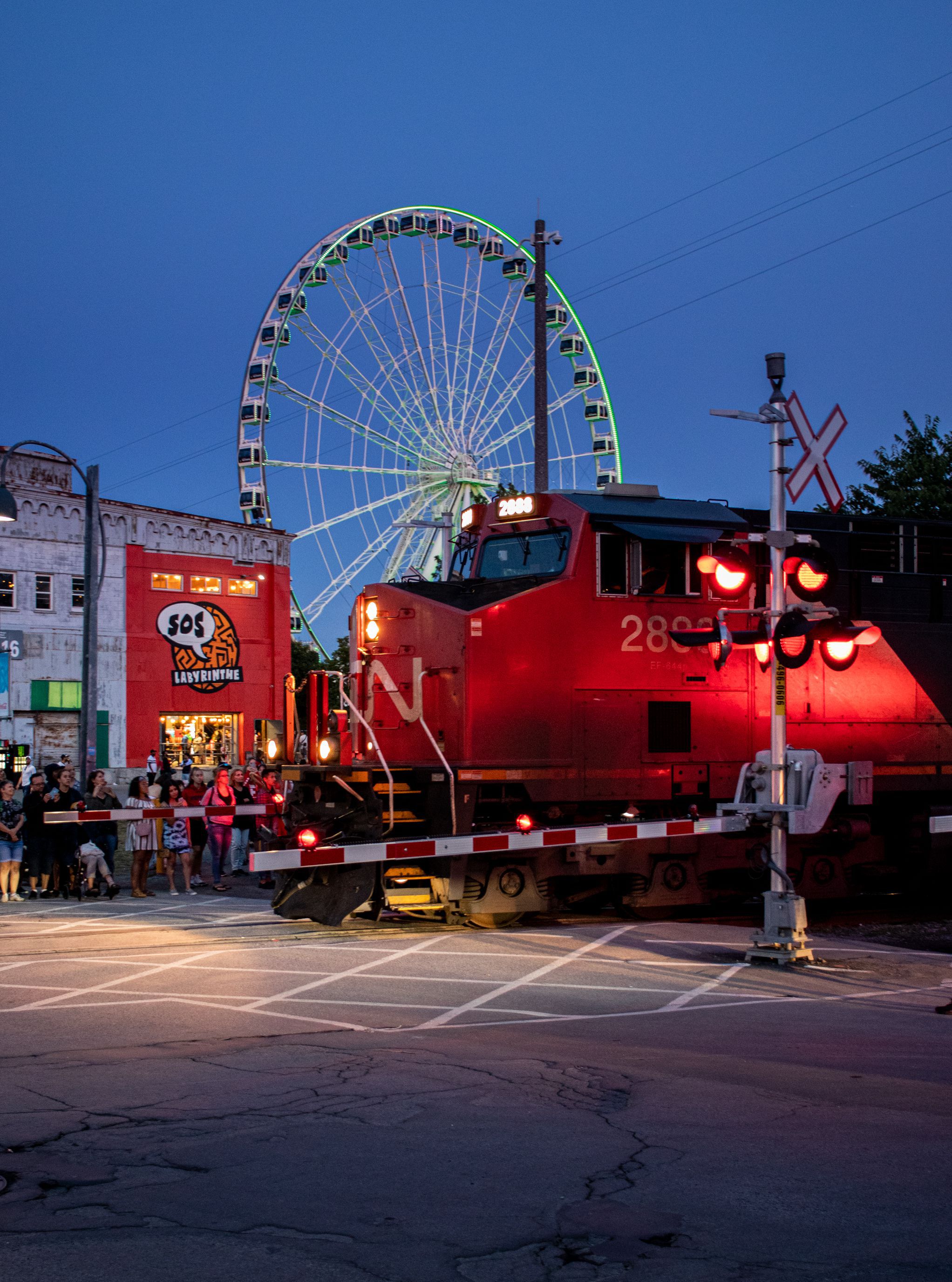 En me baladant dans le centre, j'ai eu la surprise d'y voir passer un train de marchandises, un train nord américain, de 3km de long, en plein centre ville d'un grande métropole !