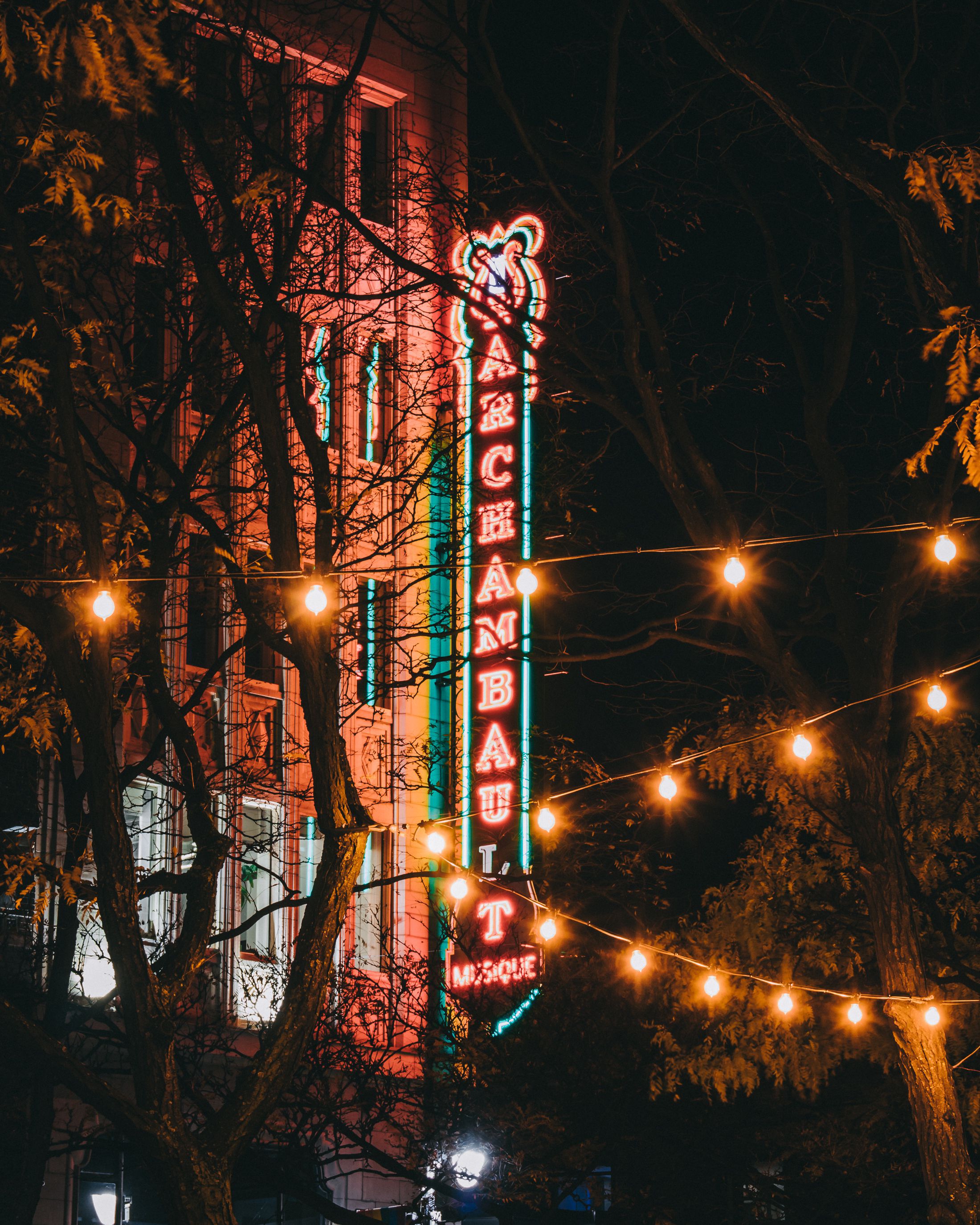 Et j'en ai profiter pour prendre ma revanche sur un samedi précédent, où je voulais photographier le Bat signal (de Batman donc) projeté à Montréal en exclusivité Canadienne, ainsi qu'une enseigne ancienne et iconique qui venait d'être réinstallée et enfin un parc avec également une enseigne lumineuse, tout au même endroit !