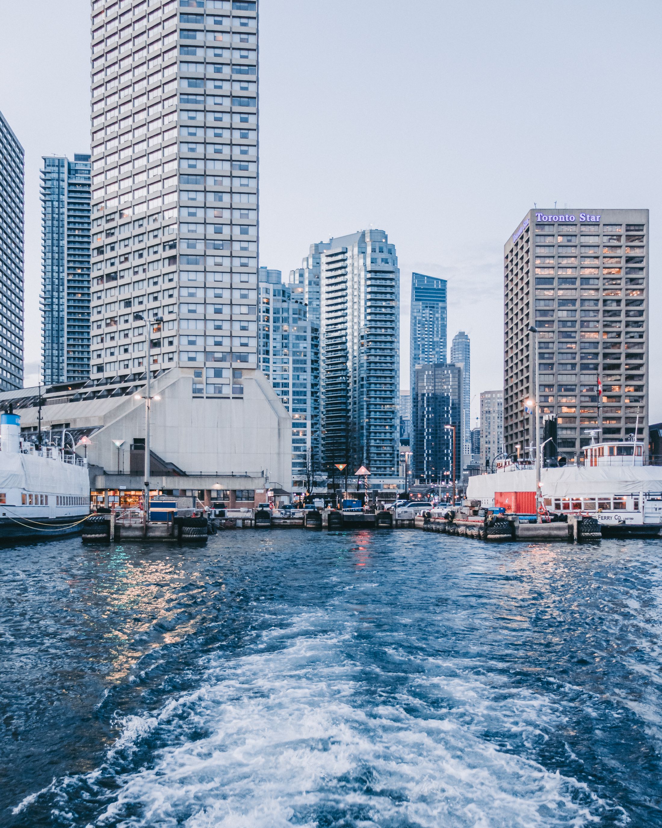 Les immeubles y sont bien plus nombreux et plus haut, la tour CN surplombe la ville, et fait face au paisible lac Ontario qui contraste avec l'effervescence de la métropole...