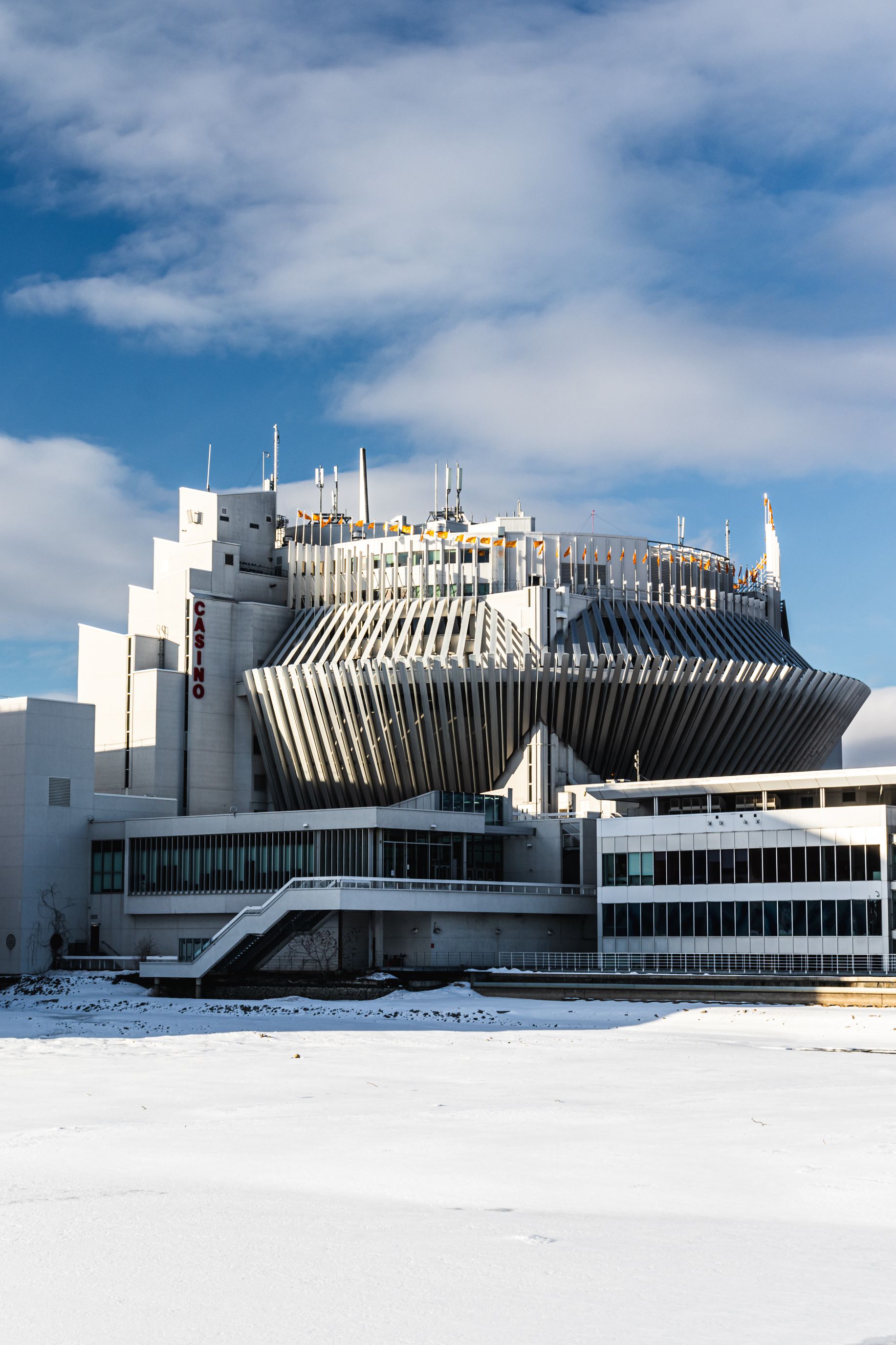 Tout d'abord le casino de Montréal, situé sur l'île Notre-Dame dans les anciens pavillons de la France et du Québec durant l'exposition universelle de 1967. Donc totalement à l’extérieur de la ville, sur une île ou il n'y a que lui et le circuit de F1 Gilles Villeneuves.